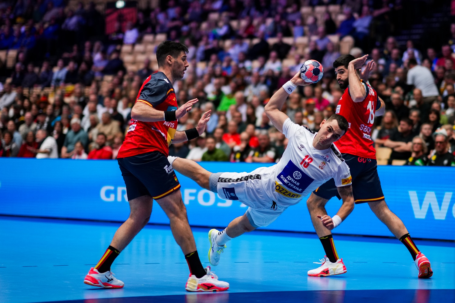 Rukometna reprezentacija Španije upisala je pobjedu protiv Srbije rezultatom 29:27 u prvom međusobnom susretu na Evropskom prvenstvu u Herningu, u utakmici koja je obilovala čvrstim odbranama, dugim napadima i velikom borbom na obje strane.